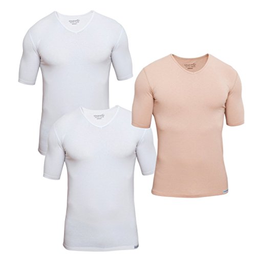 Best Seller! Schaufenberger v-neck Undershirt three-pack, Men´s business undershirt, pack of three , 2x white colour and 1x skin colour, White, XX-Large Review